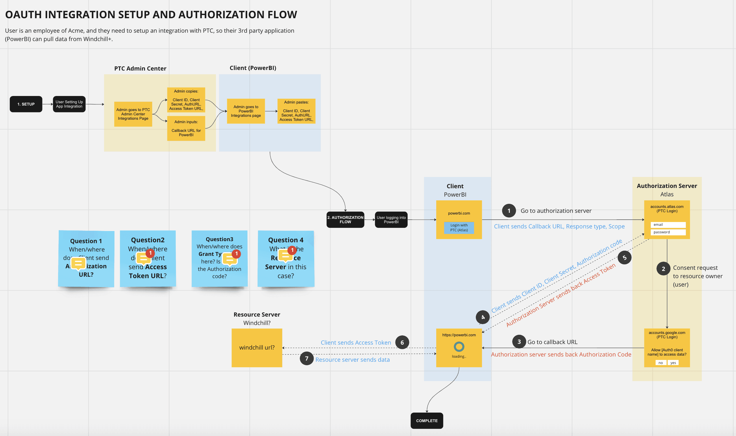 With the user workflows mapped, I needed to better understand the technical mechanics, how OAuth 2.0 would actually work within PTC’s ecosystem, and what it would take to build a usable interface around it.