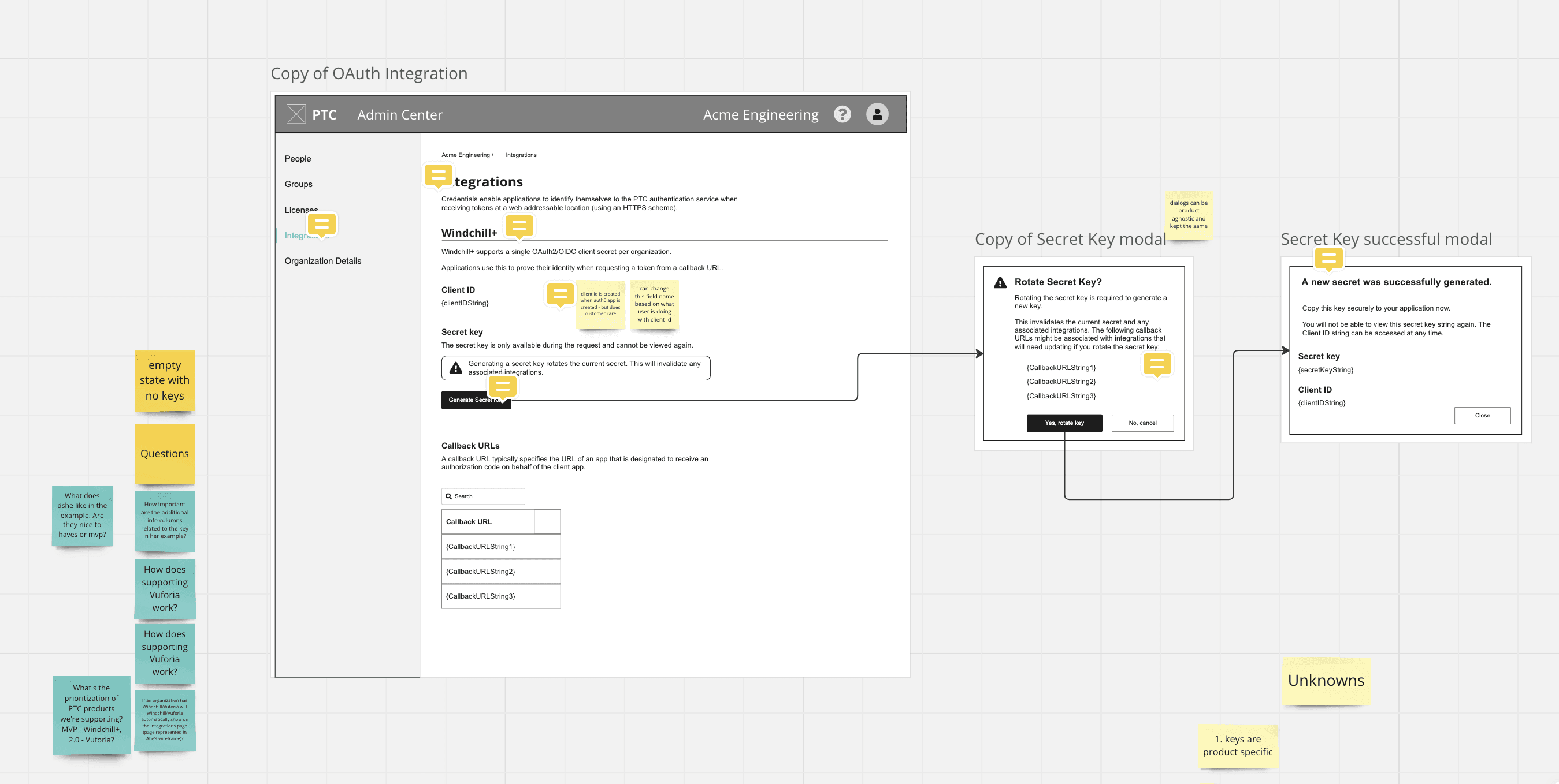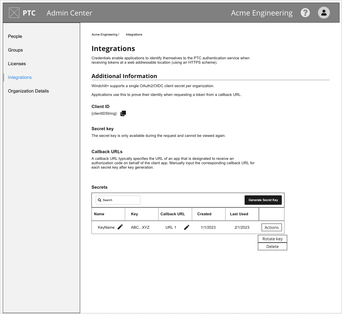 In early discussions, we assumed the most critical part of the integration was the Secret Key, as it appeared to be the central connection between Windchill and third-party apps. However, as the team reviewed and tested my wireframes, we discovered that Client IDs played a more pivotal role in linking applications. This shift led to a redesign that moved from a Secret Key-driven interface to one that prioritized Client ID management.